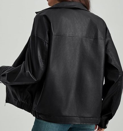 Faux Leather Jacket Women Motorcycle Zipper Bomber PU Bike Coat with Pockets