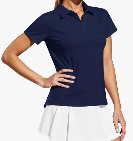 Women’s V Neck Golf Polo Shirts UPF 50+ Short Sleeve Tennis Shirt Collared Workout Tops Quick Dry