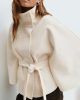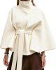 - Kinghua cape coat for women batwing sleeve poncho pea coats soft warm stand collar belt cloak cape outwear