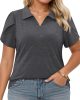 - Stylish and comfy plus size polo tee for work–It has a business like design with the lapel collar will better show femininity.You can pair with business suits for a dressy look, or wear with jeans and flats for a more casual appearance.