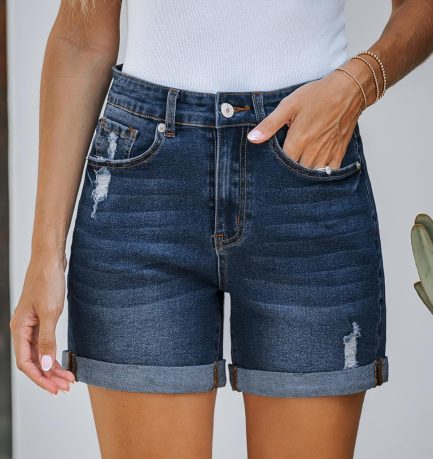 - Features: Trendy jean shorts features crossover, high waisted, rolled hem, zipper and basic five pockets design. The rolled hem detailing on these shorts add a touch of laid-back charm to your outfit, striking a balance between fashion and casual